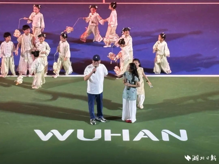 开幕式在震撼的开场灯光秀中开启,光影流转间勾勒出武汉“白云黄鹤”的城市意象与网球运动的动感活力。随后,舞蹈《凤舞楚天》登场,以灵动舞姿展现荆楚文化魅力。正值中秋佳节,《但愿人长久》《汉阳门花园》《月亮代表我的心》《如愿》等歌曲联唱温情上演,传统韵味与城市记忆交融,引发全场共鸣。