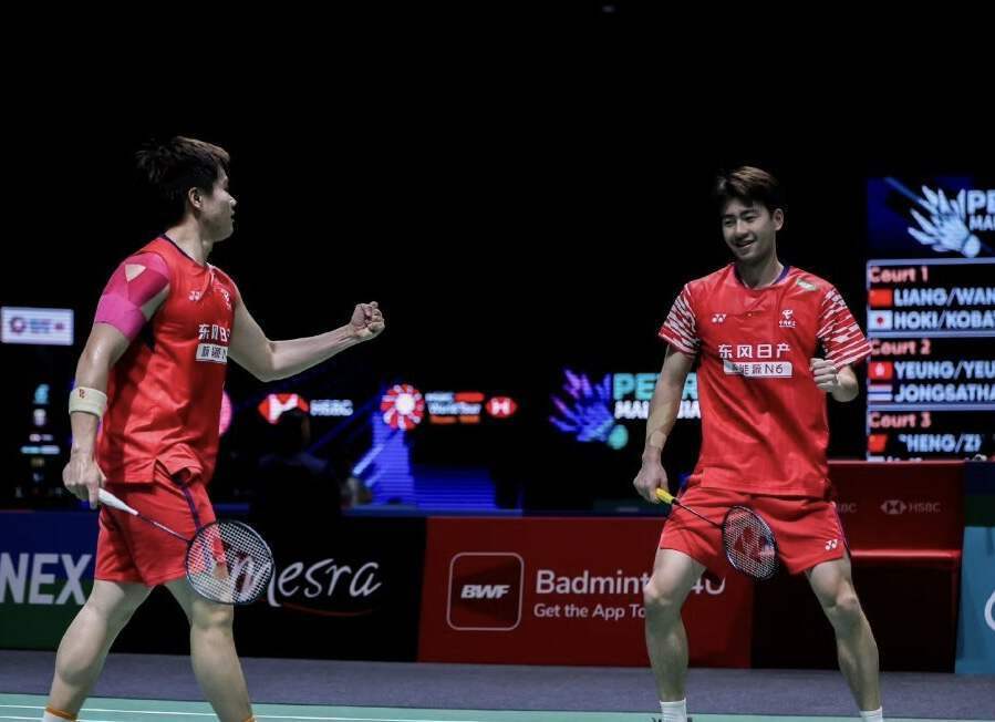 首局比赛,冯彦哲和黄东萍凭借局末阶段的果断进攻以21-19险胜。第二局,中国组合在16-9领先的大好局面下突然崩盘,惨遭对手逆转。决胜局中,冯彦哲和黄东萍重新调整状态,以21-18艰难拿下胜利。女双世界第一刘圣书和谭宁与李怡婧和罗徐敏交手,首局,“圣坛组合”凭借强大攻势以21-14获胜。易边再战,刘圣书和谭宁依旧势不可挡,最终以21-15拿下比赛晋级四强。