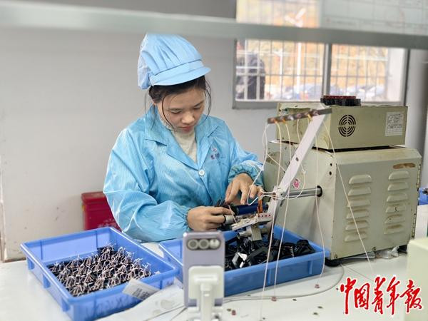 12月4日,湖南郴州,资兴市八面山瑶族乡,慧华电子有限公司生产车间。