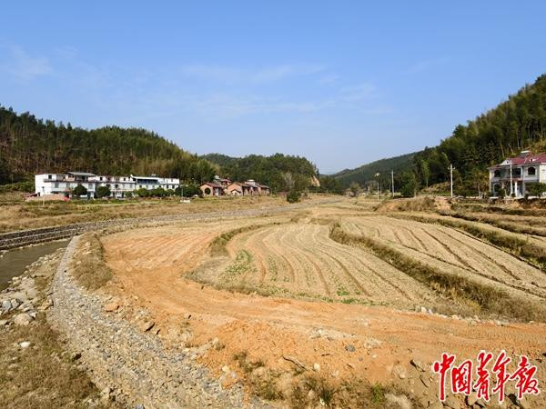 12月4日,湖南郴州,资兴市八面山瑶族乡坪田桥,两岸耕地已完全恢复。本组图片由中青报·中青网记者卢健拍摄